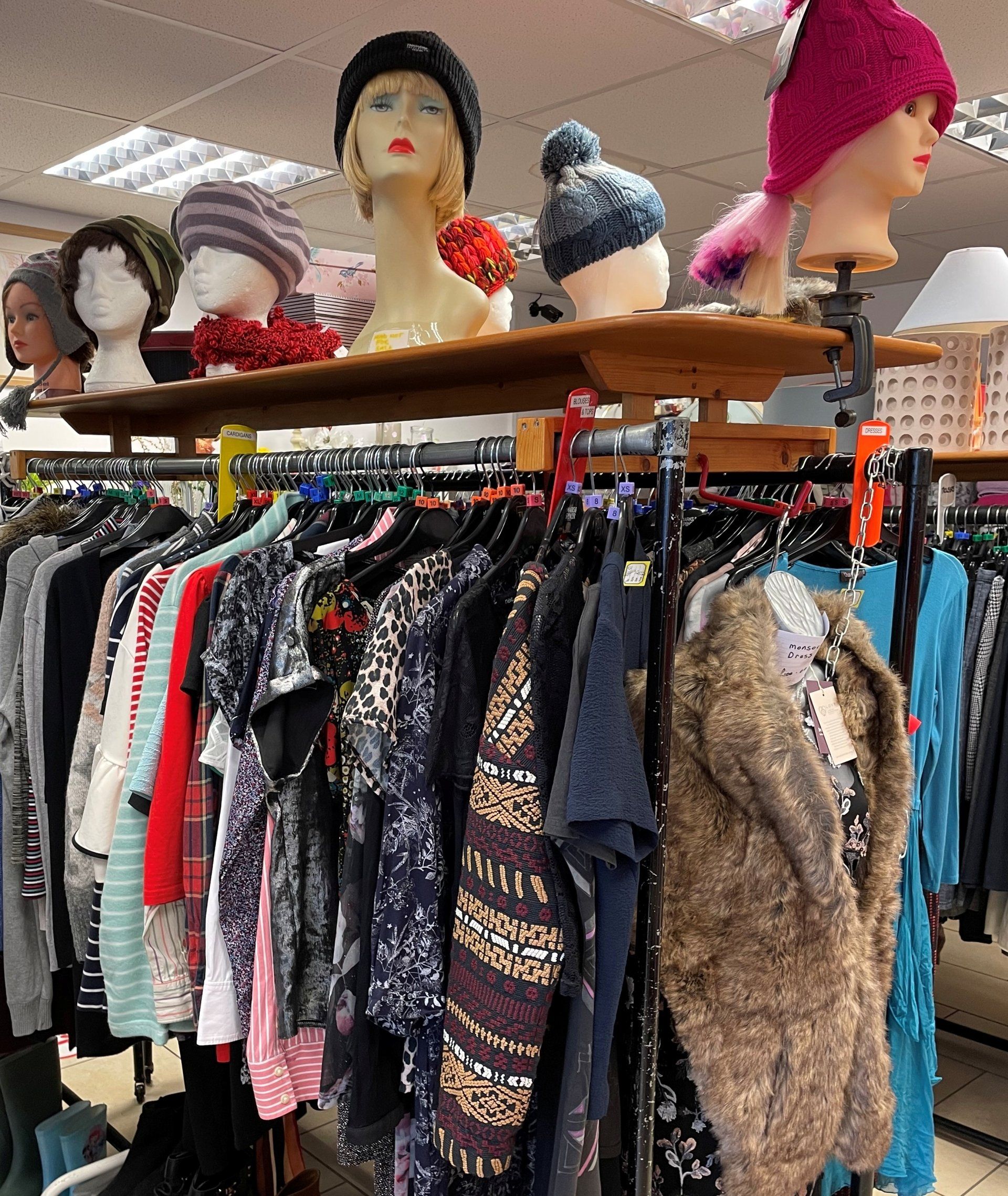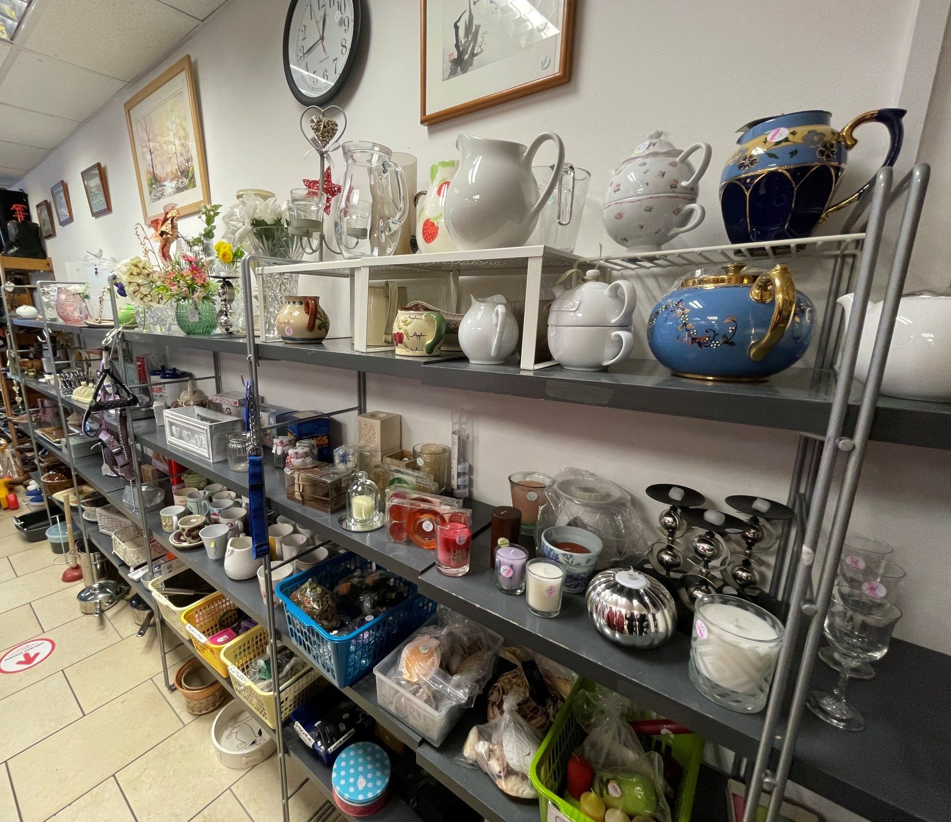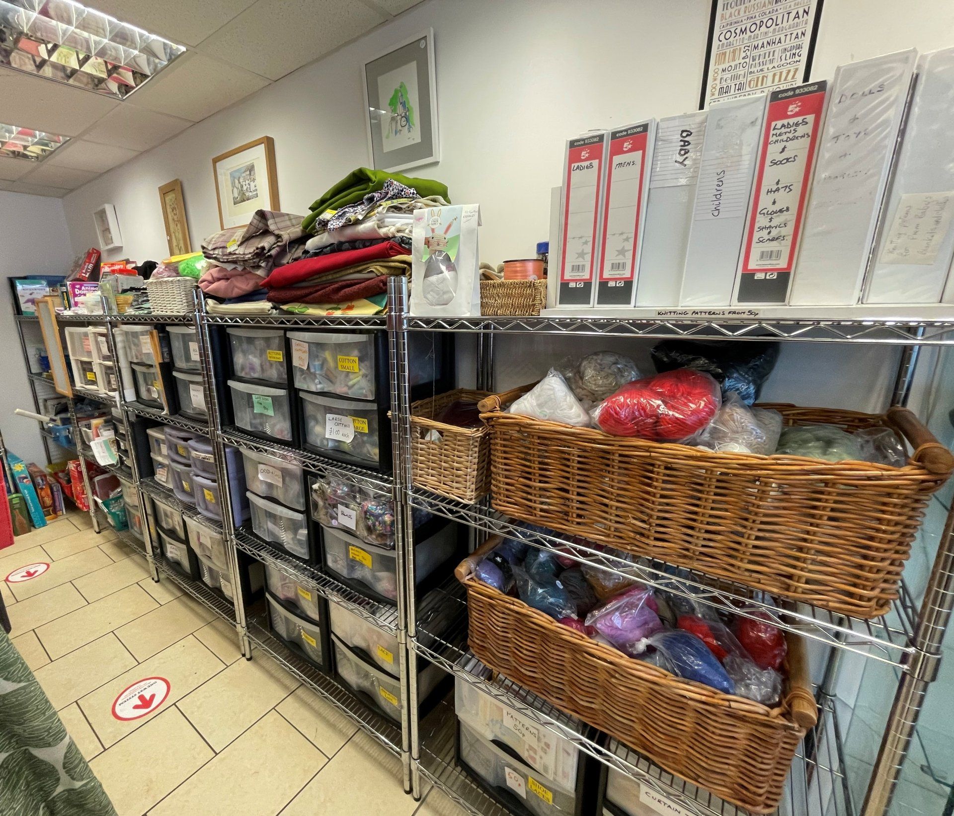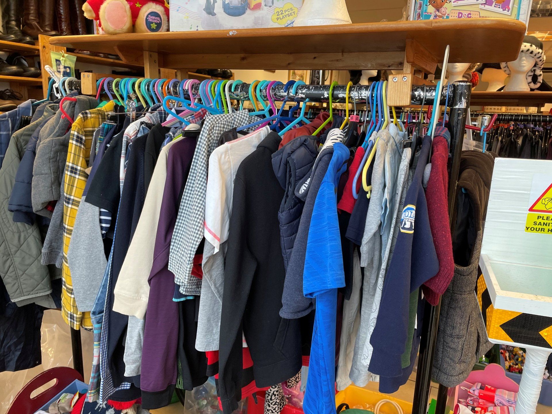 We sell men's, ladies' and children's clothes, shoes, handbags, jewellery, toys, games, bricabrac, bedding, blankets, ornaments, homeware, pictures, frames. We have a very extensive haberdashery section including Knitting Needles, Wool, Knitting Patterns, Embroidery Silk, Crochet Hooks, Cross Stitch Kits, Ribbon, Fabric, Elastic, Taylors Wax, Zips, Buttons and Beads, Felt, Cottons, Sets of sewing needles, Curtain Tapes and Accessories, Lace, and much much more from 50p.